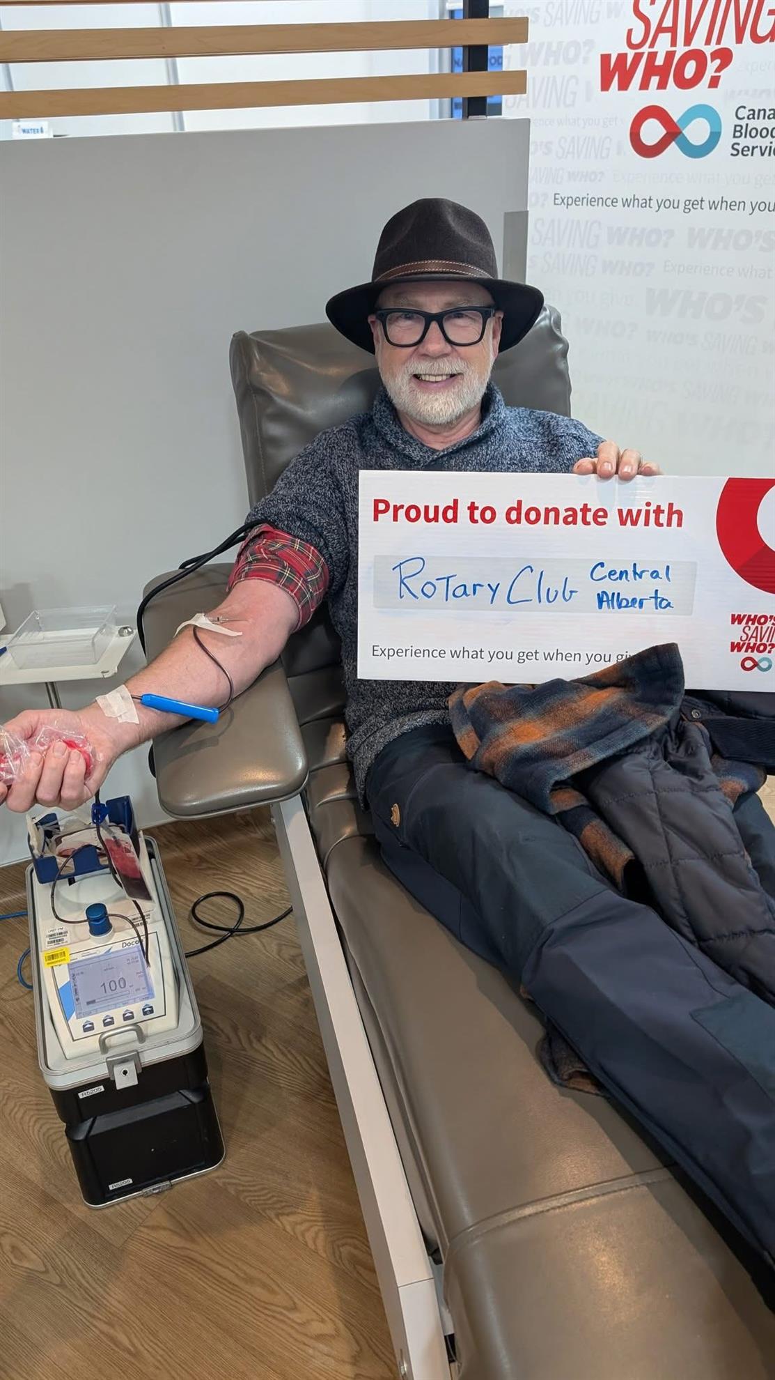 The Rotary Clubs of Central Alberta Team blood drive was a great success today, with seven pints of blood and a very generous $100 donation collected at Canadian Blood Services in Red Deer. We thank all who joined us at the Ranch House Restaurant & Bar to give our donors a round of applause. A special shout out to the 6 members of Sunrise Rotary Club who showed up to roll up their sleeves together (and the special guest of Susan K)